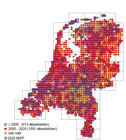 Bron: FLORON - Gemodelleerd op basis van waarnemingen uit de NDFF voor de periode 2000-2021.