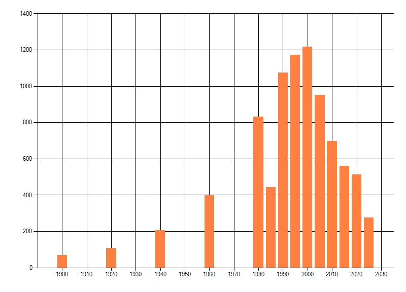 Het aantal atlasblokken (5x5 km) waarin de soort is gemeld binnen een periode van vijf jaar (vanaf 1980) of twintig jaar. Niet gecorrigeerd voor waarnemersinspanning en het aantal doorgegeven waarnemingen kan sterk variëren per periode, dus een trend in verspreiding kan hier niet direct uit worden afgelezen. Het opgegeven jaartal is het eerste jaar van de periode. Bron: gevalideerde waarnemingen uit de NDFF.