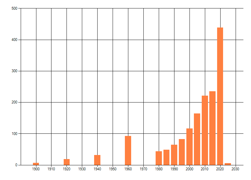 Het aantal atlasblokken (5x5 km) waarin de soort is gemeld binnen een periode van vijf jaar (vanaf 1980) of twintig jaar. Niet gecorrigeerd voor waarnemersinspanning en het aantal doorgegeven waarnemingen kan sterk variëren per periode, dus een trend in verspreiding kan hier niet direct uit worden afgelezen. Het opgegeven jaartal is het eerste jaar van de periode. Bron: gevalideerde waarnemingen uit de NDFF.
