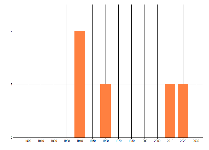 Het aantal atlasblokken (5x5 km) waarin de soort is gemeld binnen een periode van vijf jaar (vanaf 1980) of twintig jaar. Niet gecorrigeerd voor waarnemersinspanning en het aantal doorgegeven waarnemingen kan sterk variëren per periode, dus een trend in verspreiding kan hier niet direct uit worden afgelezen. Het opgegeven jaartal is het eerste jaar van de periode. Bron: gevalideerde waarnemingen uit de NDFF.