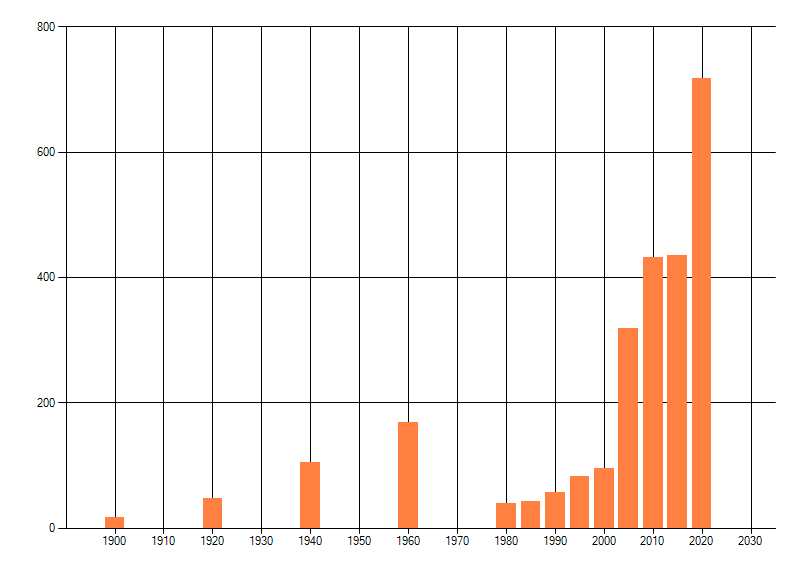 Het aantal atlasblokken (5x5 km) waarin de soort is gemeld binnen een periode van vijf jaar (vanaf 1980) of twintig jaar. Niet gecorrigeerd voor waarnemersinspanning en het aantal doorgegeven waarnemingen kan sterk variëren per periode, dus een trend in verspreiding kan hier niet direct uit worden afgelezen. Het opgegeven jaartal is het eerste jaar van de periode. Bron: gevalideerde waarnemingen uit de NDFF.