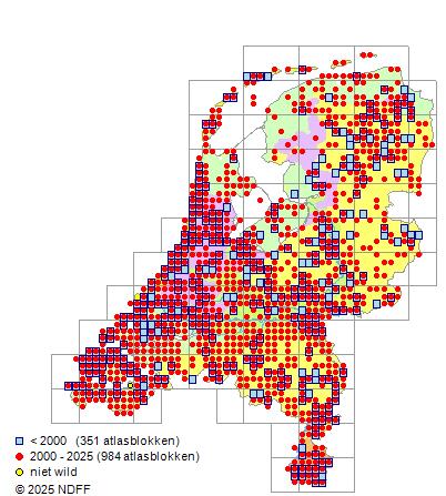 Bron: FLORON - Gemodelleerd op basis van waarnemingen uit de NDFF voor de periode 2000-2021.