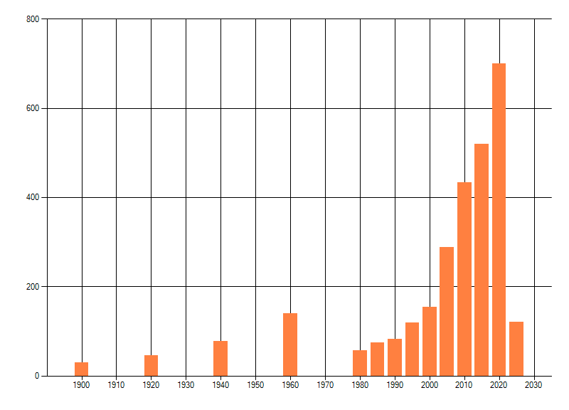 Het aantal atlasblokken (5x5 km) waarin de soort is gemeld binnen een periode van vijf jaar (vanaf 1980) of twintig jaar. Niet gecorrigeerd voor waarnemersinspanning en het aantal doorgegeven waarnemingen kan sterk variëren per periode, dus een trend in verspreiding kan hier niet direct uit worden afgelezen. Het opgegeven jaartal is het eerste jaar van de periode. Bron: gevalideerde waarnemingen uit de NDFF.