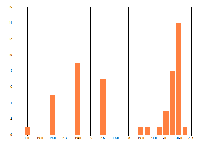 Het aantal atlasblokken (5x5 km) waarin de soort is gemeld binnen een periode van vijf jaar (vanaf 1980) of twintig jaar. Niet gecorrigeerd voor waarnemersinspanning en het aantal doorgegeven waarnemingen kan sterk variëren per periode, dus een trend in verspreiding kan hier niet direct uit worden afgelezen. Het opgegeven jaartal is het eerste jaar van de periode. Bron: gevalideerde waarnemingen uit de NDFF.