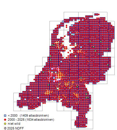 Bron: FLORON - Gemodelleerd op basis van waarnemingen uit de NDFF voor de periode 2000-2021.