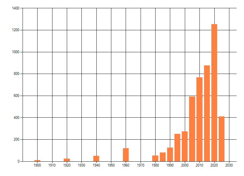 Het aantal atlasblokken (5x5 km) waarin de soort is gemeld binnen een periode van vijf jaar (vanaf 1980) of twintig jaar. Niet gecorrigeerd voor waarnemersinspanning en het aantal doorgegeven waarnemingen kan sterk variëren per periode, dus een trend in verspreiding kan hier niet direct uit worden afgelezen. Het opgegeven jaartal is het eerste jaar van de periode. Bron: gevalideerde waarnemingen uit de NDFF.