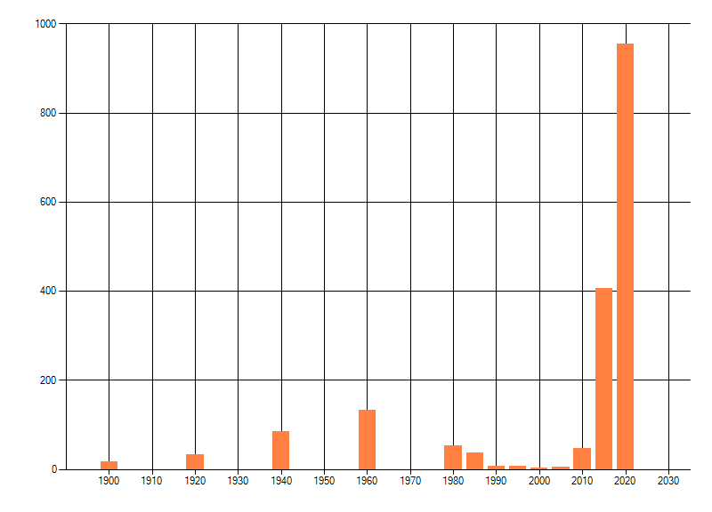 Het aantal atlasblokken (5x5 km) waarin de soort is gemeld binnen een periode van vijf jaar (vanaf 1980) of twintig jaar. Niet gecorrigeerd voor waarnemersinspanning en het aantal doorgegeven waarnemingen kan sterk variëren per periode, dus een trend in verspreiding kan hier niet direct uit worden afgelezen. Het opgegeven jaartal is het eerste jaar van de periode. Bron: gevalideerde waarnemingen uit de NDFF.
