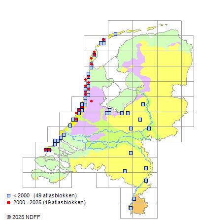 Zeldzaam. Komt lokaal voor in de duinen. RL: ernstig bedreigd.