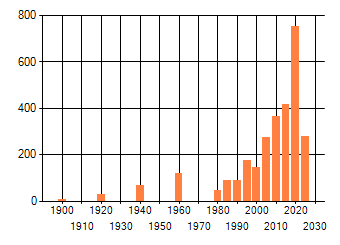 Het aantal atlasblokken (5x5 km) waarin de soort is gemeld binnen een periode van vijf jaar (vanaf 1980) of twintig jaar. Niet gecorrigeerd voor waarnemersinspanning en het aantal doorgegeven waarnemingen kan sterk variëren per periode, dus een trend in verspreiding kan hier niet direct uit worden afgelezen. Het opgegeven jaartal is het eerste jaar van de periode. Bron: gevalideerde waarnemingen uit de NDFF.