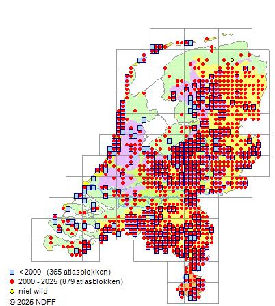 Bron: FLORON - Gemodelleerd op basis van waarnemingen uit de NDFF voor de periode 2000-2021.
