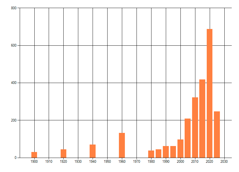Het aantal atlasblokken (5x5 km) waarin de soort is gemeld binnen een periode van vijf jaar (vanaf 1980) of twintig jaar. Niet gecorrigeerd voor waarnemersinspanning en het aantal doorgegeven waarnemingen kan sterk variëren per periode, dus een trend in verspreiding kan hier niet direct uit worden afgelezen. Het opgegeven jaartal is het eerste jaar van de periode. Bron: gevalideerde waarnemingen uit de NDFF.