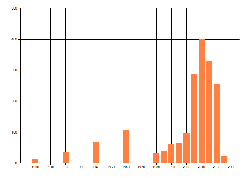 Het aantal atlasblokken (5x5 km) waarin de soort is gemeld binnen een periode van vijf jaar (vanaf 1980) of twintig jaar. Niet gecorrigeerd voor waarnemersinspanning en het aantal doorgegeven waarnemingen kan sterk variëren per periode, dus een trend in verspreiding kan hier niet direct uit worden afgelezen. Het opgegeven jaartal is het eerste jaar van de periode. Bron: gevalideerde waarnemingen uit de NDFF.