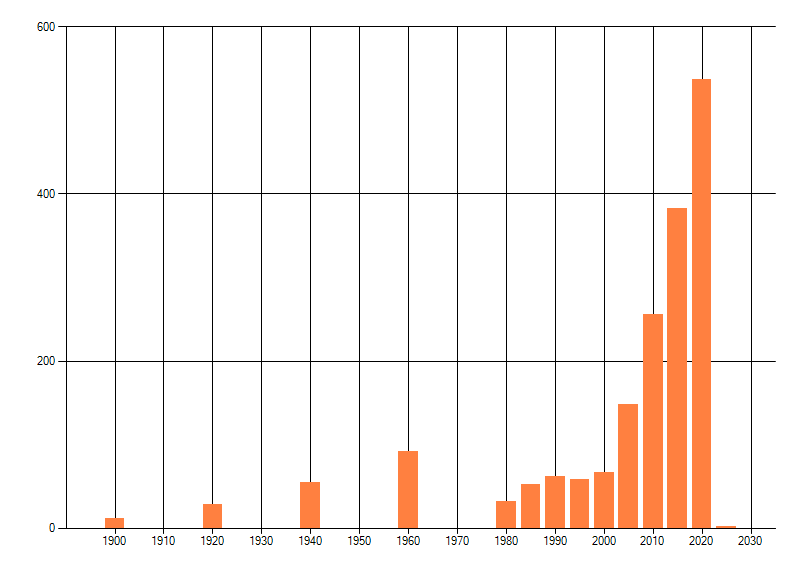 Het aantal atlasblokken (5x5 km) waarin de soort is gemeld binnen een periode van vijf jaar (vanaf 1980) of twintig jaar. Niet gecorrigeerd voor waarnemersinspanning en het aantal doorgegeven waarnemingen kan sterk variëren per periode, dus een trend in verspreiding kan hier niet direct uit worden afgelezen. Het opgegeven jaartal is het eerste jaar van de periode. Bron: gevalideerde waarnemingen uit de NDFF.