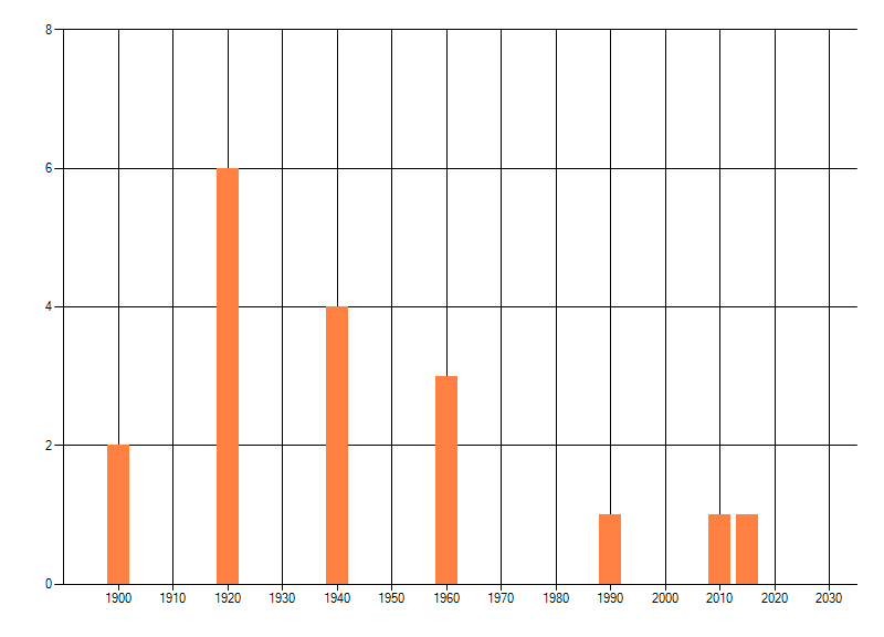 Het aantal atlasblokken (5x5 km) waarin de soort is gemeld binnen een periode van vijf jaar (vanaf 1980) of twintig jaar. Niet gecorrigeerd voor waarnemersinspanning en het aantal doorgegeven waarnemingen kan sterk variëren per periode, dus een trend in verspreiding kan hier niet direct uit worden afgelezen. Het opgegeven jaartal is het eerste jaar van de periode. Bron: gevalideerde waarnemingen uit de NDFF.