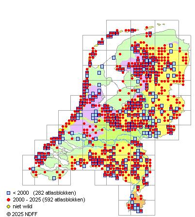 Bron: FLORON - Gemodelleerd op basis van waarnemingen uit de NDFF voor de periode 2000-2021.