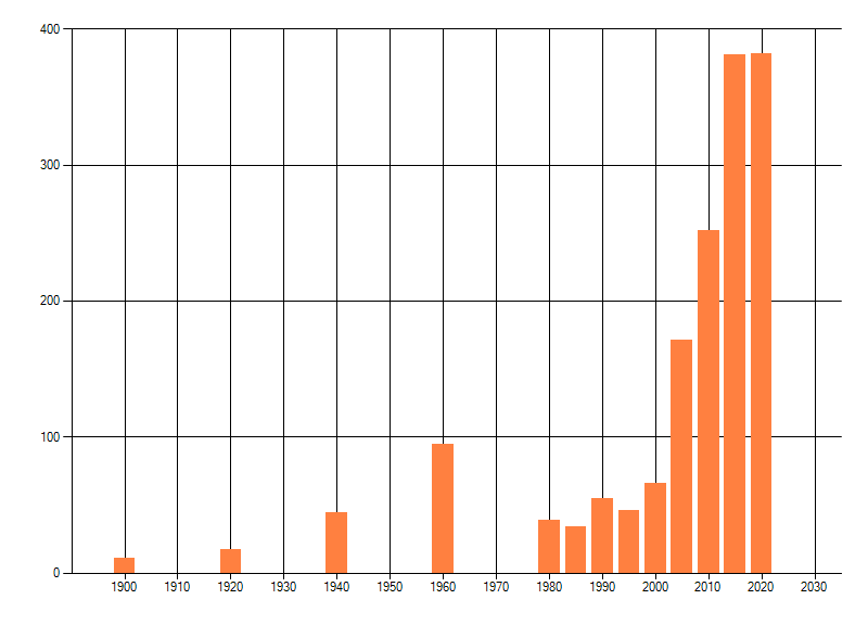 Het aantal atlasblokken (5x5 km) waarin de soort is gemeld binnen een periode van vijf jaar (vanaf 1980) of twintig jaar. Niet gecorrigeerd voor waarnemersinspanning en het aantal doorgegeven waarnemingen kan sterk variëren per periode, dus een trend in verspreiding kan hier niet direct uit worden afgelezen. Het opgegeven jaartal is het eerste jaar van de periode. Bron: gevalideerde waarnemingen uit de NDFF.