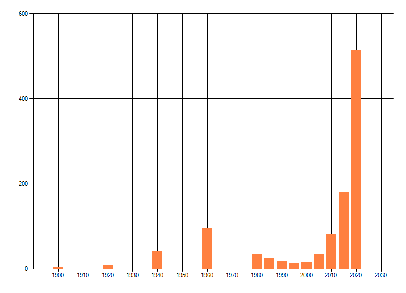 Het aantal atlasblokken (5x5 km) waarin de soort is gemeld binnen een periode van vijf jaar (vanaf 1980) of twintig jaar. Niet gecorrigeerd voor waarnemersinspanning en het aantal doorgegeven waarnemingen kan sterk variëren per periode, dus een trend in verspreiding kan hier niet direct uit worden afgelezen. Het opgegeven jaartal is het eerste jaar van de periode. Bron: gevalideerde waarnemingen uit de NDFF.