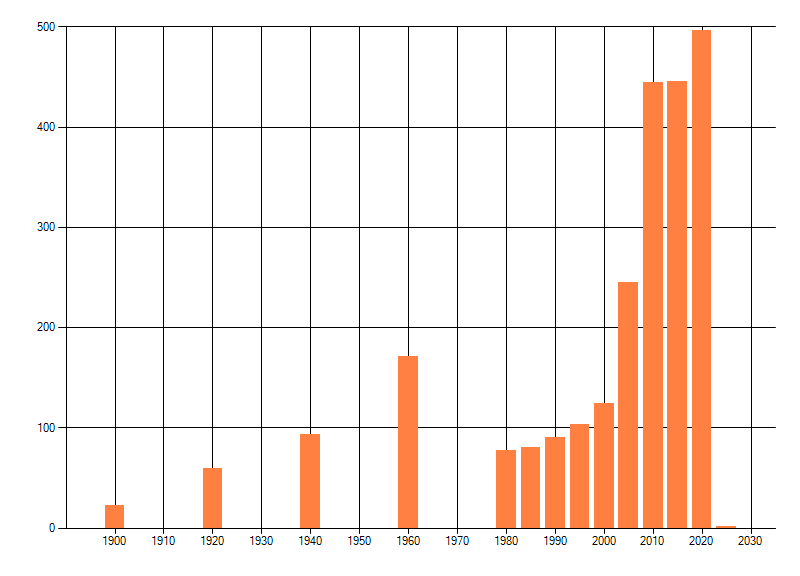 Het aantal atlasblokken (5x5 km) waarin de soort is gemeld binnen een periode van vijf jaar (vanaf 1980) of twintig jaar. Niet gecorrigeerd voor waarnemersinspanning en het aantal doorgegeven waarnemingen kan sterk variëren per periode, dus een trend in verspreiding kan hier niet direct uit worden afgelezen. Het opgegeven jaartal is het eerste jaar van de periode. Bron: gevalideerde waarnemingen uit de NDFF.