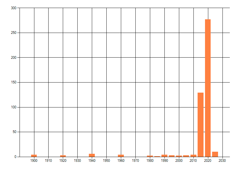 Het aantal atlasblokken (5x5 km) waarin de soort is gemeld binnen een periode van vijf jaar (vanaf 1980) of twintig jaar. Niet gecorrigeerd voor waarnemersinspanning en het aantal doorgegeven waarnemingen kan sterk variëren per periode, dus een trend in verspreiding kan hier niet direct uit worden afgelezen. Het opgegeven jaartal is het eerste jaar van de periode. Bron: gevalideerde waarnemingen uit de NDFF.