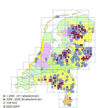 Bron: FLORON - Gemodelleerd op basis van waarnemingen uit de NDFF voor de periode 2000-2021.