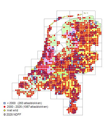 Bron: FLORON - Gemodelleerd op basis van waarnemingen uit de NDFF voor de periode 2000-2021.