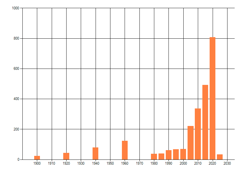 Het aantal atlasblokken (5x5 km) waarin de soort is gemeld binnen een periode van vijf jaar (vanaf 1980) of twintig jaar. Niet gecorrigeerd voor waarnemersinspanning en het aantal doorgegeven waarnemingen kan sterk variëren per periode, dus een trend in verspreiding kan hier niet direct uit worden afgelezen. Het opgegeven jaartal is het eerste jaar van de periode. Bron: gevalideerde waarnemingen uit de NDFF.