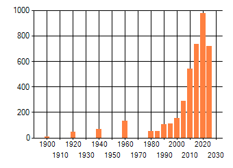 Het aantal atlasblokken (5x5 km) waarin de soort is gemeld binnen een periode van vijf jaar (vanaf 1980) of twintig jaar. Niet gecorrigeerd voor waarnemersinspanning en het aantal doorgegeven waarnemingen kan sterk variëren per periode, dus een trend in verspreiding kan hier niet direct uit worden afgelezen. Het opgegeven jaartal is het eerste jaar van de periode. Bron: gevalideerde waarnemingen uit de NDFF.