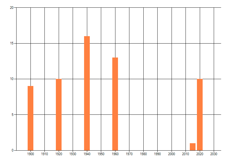 Het aantal atlasblokken (5x5 km) waarin de soort is gemeld binnen een periode van vijf jaar (vanaf 1980) of twintig jaar. Niet gecorrigeerd voor waarnemersinspanning en het aantal doorgegeven waarnemingen kan sterk variëren per periode, dus een trend in verspreiding kan hier niet direct uit worden afgelezen. Het opgegeven jaartal is het eerste jaar van de periode. Bron: gevalideerde waarnemingen uit de NDFF.
