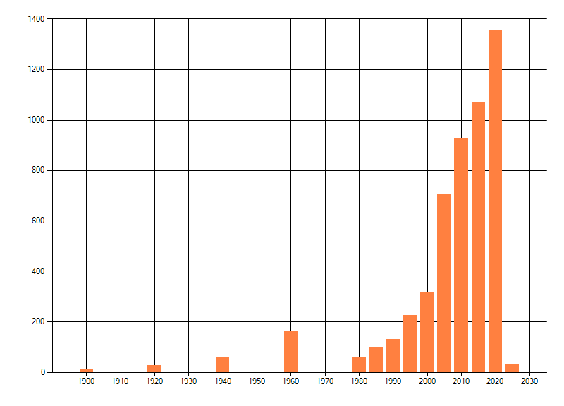 Het aantal atlasblokken (5x5 km) waarin de soort is gemeld binnen een periode van vijf jaar (vanaf 1980) of twintig jaar. Niet gecorrigeerd voor waarnemersinspanning en het aantal doorgegeven waarnemingen kan sterk variëren per periode, dus een trend in verspreiding kan hier niet direct uit worden afgelezen. Het opgegeven jaartal is het eerste jaar van de periode. Bron: gevalideerde waarnemingen uit de NDFF.