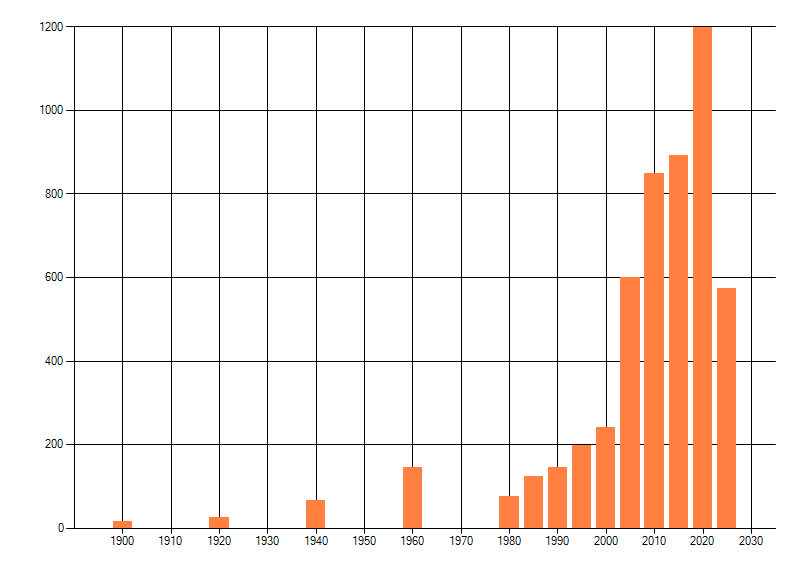 Het aantal atlasblokken (5x5 km) waarin de soort is gemeld binnen een periode van vijf jaar (vanaf 1980) of twintig jaar. Niet gecorrigeerd voor waarnemersinspanning en het aantal doorgegeven waarnemingen kan sterk variëren per periode, dus een trend in verspreiding kan hier niet direct uit worden afgelezen. Het opgegeven jaartal is het eerste jaar van de periode. Bron: gevalideerde waarnemingen uit de NDFF.