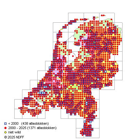 Bron: FLORON - Gemodelleerd op basis van waarnemingen uit de NDFF voor de periode 2000-2021.