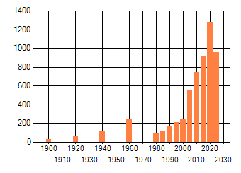 Het aantal atlasblokken (5x5 km) waarin de soort is gemeld binnen een periode van vijf jaar (vanaf 1980) of twintig jaar. Niet gecorrigeerd voor waarnemersinspanning en het aantal doorgegeven waarnemingen kan sterk variëren per periode, dus een trend in verspreiding kan hier niet direct uit worden afgelezen. Het opgegeven jaartal is het eerste jaar van de periode. Bron: gevalideerde waarnemingen uit de NDFF.