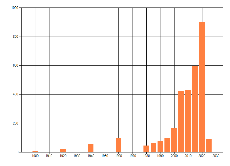Het aantal atlasblokken (5x5 km) waarin de soort is gemeld binnen een periode van vijf jaar (vanaf 1980) of twintig jaar. Niet gecorrigeerd voor waarnemersinspanning en het aantal doorgegeven waarnemingen kan sterk variëren per periode, dus een trend in verspreiding kan hier niet direct uit worden afgelezen. Het opgegeven jaartal is het eerste jaar van de periode. Bron: gevalideerde waarnemingen uit de NDFF.