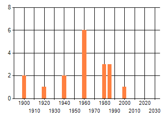 Het aantal atlasblokken (5x5 km) waarin de soort is gemeld binnen een periode van vijf jaar (vanaf 1980) of twintig jaar. Niet gecorrigeerd voor waarnemersinspanning en het aantal doorgegeven waarnemingen kan sterk variëren per periode, dus een trend in verspreiding kan hier niet direct uit worden afgelezen. Het opgegeven jaartal is het eerste jaar van de periode. Bron: gevalideerde waarnemingen uit de NDFF.