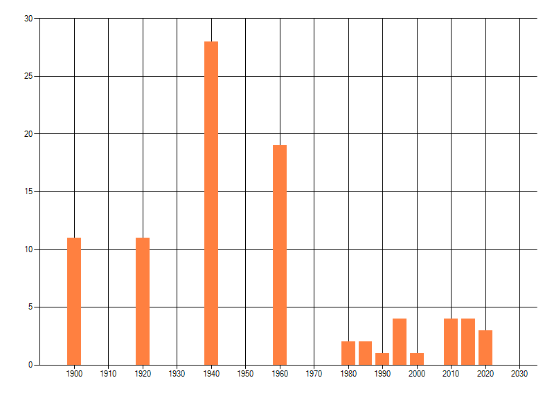 Het aantal atlasblokken (5x5 km) waarin de soort is gemeld binnen een periode van vijf jaar (vanaf 1980) of twintig jaar. Niet gecorrigeerd voor waarnemersinspanning en het aantal doorgegeven waarnemingen kan sterk variëren per periode, dus een trend in verspreiding kan hier niet direct uit worden afgelezen. Het opgegeven jaartal is het eerste jaar van de periode. Bron: gevalideerde waarnemingen uit de NDFF.
