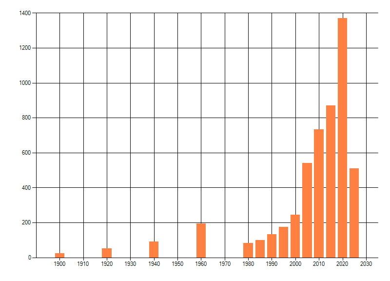 Het aantal atlasblokken (5x5 km) waarin de soort is gemeld binnen een periode van vijf jaar (vanaf 1980) of twintig jaar. Niet gecorrigeerd voor waarnemersinspanning en het aantal doorgegeven waarnemingen kan sterk variëren per periode, dus een trend in verspreiding kan hier niet direct uit worden afgelezen. Het opgegeven jaartal is het eerste jaar van de periode. Bron: gevalideerde waarnemingen uit de NDFF.