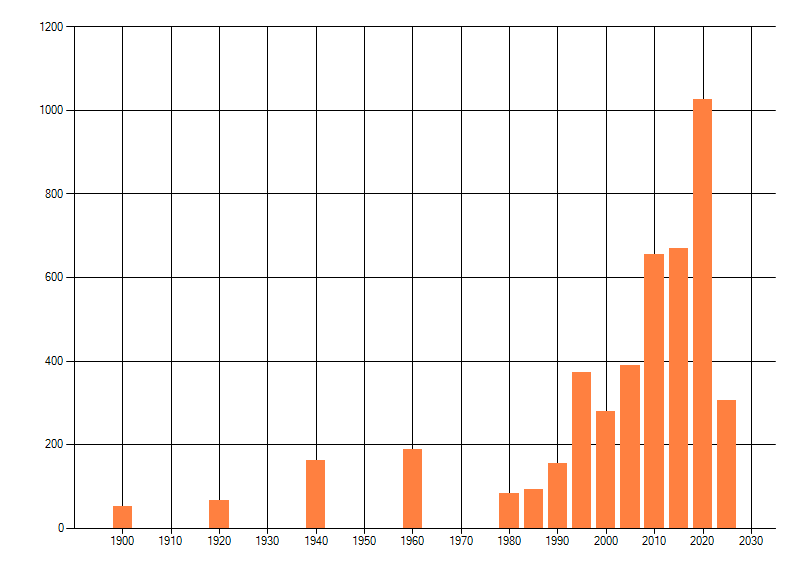 Het aantal atlasblokken (5x5 km) waarin de soort is gemeld binnen een periode van vijf jaar (vanaf 1980) of twintig jaar. Niet gecorrigeerd voor waarnemersinspanning en het aantal doorgegeven waarnemingen kan sterk variëren per periode, dus een trend in verspreiding kan hier niet direct uit worden afgelezen. Het opgegeven jaartal is het eerste jaar van de periode. Bron: gevalideerde waarnemingen uit de NDFF.