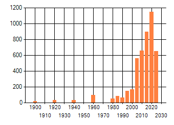 Het aantal atlasblokken (5x5 km) waarin de soort is gemeld binnen een periode van vijf jaar (vanaf 1980) of twintig jaar. Niet gecorrigeerd voor waarnemersinspanning en het aantal doorgegeven waarnemingen kan sterk variëren per periode, dus een trend in verspreiding kan hier niet direct uit worden afgelezen. Het opgegeven jaartal is het eerste jaar van de periode. Bron: gevalideerde waarnemingen uit de NDFF.