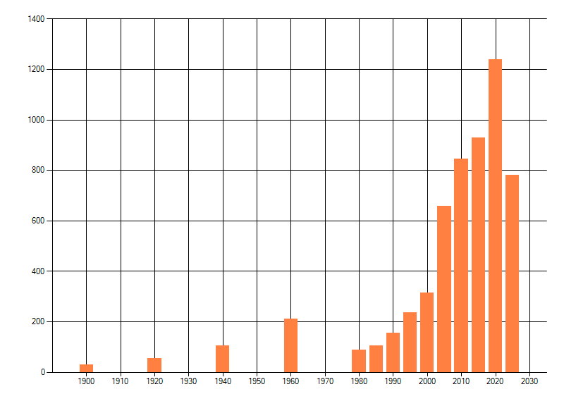 Het aantal atlasblokken (5x5 km) waarin de soort is gemeld binnen een periode van vijf jaar (vanaf 1980) of twintig jaar. Niet gecorrigeerd voor waarnemersinspanning en het aantal doorgegeven waarnemingen kan sterk variëren per periode, dus een trend in verspreiding kan hier niet direct uit worden afgelezen. Het opgegeven jaartal is het eerste jaar van de periode. Bron: gevalideerde waarnemingen uit de NDFF.