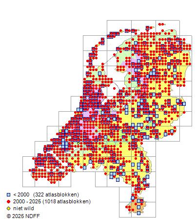 Bron: FLORON - Gemodelleerd op basis van waarnemingen uit de NDFF voor de periode 2000-2021.