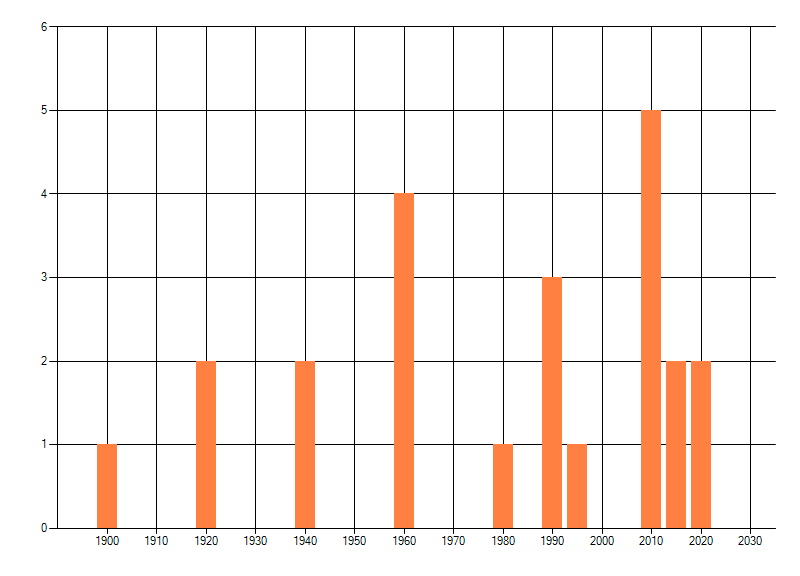 Het aantal atlasblokken (5x5 km) waarin de soort is gemeld binnen een periode van vijf jaar (vanaf 1980) of twintig jaar. Niet gecorrigeerd voor waarnemersinspanning en het aantal doorgegeven waarnemingen kan sterk variëren per periode, dus een trend in verspreiding kan hier niet direct uit worden afgelezen. Het opgegeven jaartal is het eerste jaar van de periode. Bron: gevalideerde waarnemingen uit de NDFF.