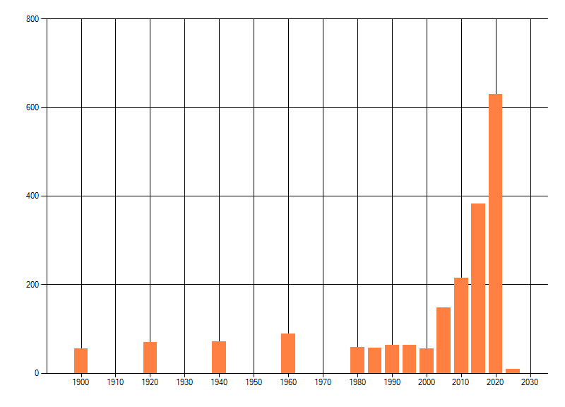Het aantal atlasblokken (5x5 km) waarin de soort is gemeld binnen een periode van vijf jaar (vanaf 1980) of twintig jaar. Niet gecorrigeerd voor waarnemersinspanning en het aantal doorgegeven waarnemingen kan sterk variëren per periode, dus een trend in verspreiding kan hier niet direct uit worden afgelezen. Het opgegeven jaartal is het eerste jaar van de periode. Bron: gevalideerde waarnemingen uit de NDFF.
