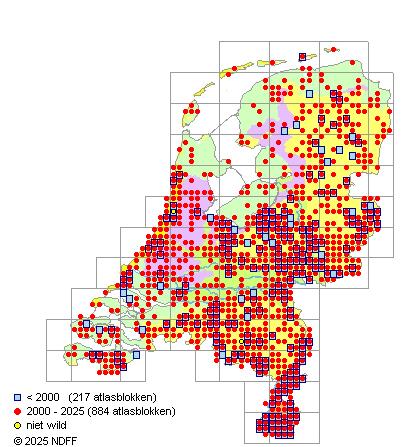 Bron: FLORON - Gemodelleerd op basis van waarnemingen uit de NDFF voor de periode 2000-2021.