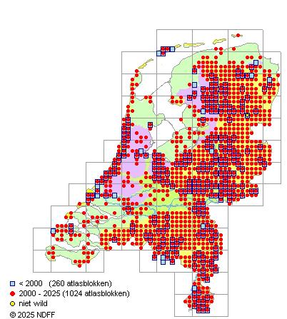 Bron: FLORON - Gemodelleerd op basis van waarnemingen uit de NDFF voor de periode 2000-2021.