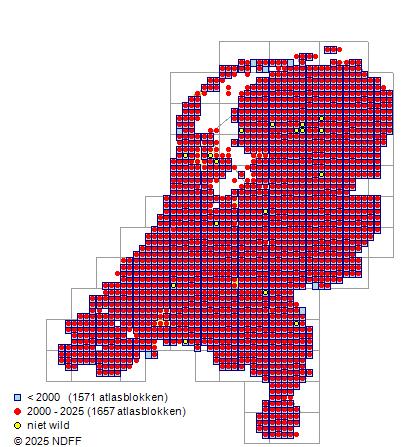 Bron: FLORON - Gemodelleerd op basis van waarnemingen uit de NDFF voor de periode 2000-2021.