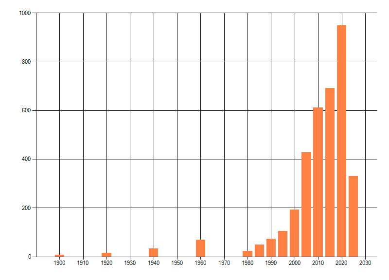 Het aantal atlasblokken (5x5 km) waarin de soort is gemeld binnen een periode van vijf jaar (vanaf 1980) of twintig jaar. Niet gecorrigeerd voor waarnemersinspanning en het aantal doorgegeven waarnemingen kan sterk variëren per periode, dus een trend in verspreiding kan hier niet direct uit worden afgelezen. Het opgegeven jaartal is het eerste jaar van de periode. Bron: gevalideerde waarnemingen uit de NDFF.
