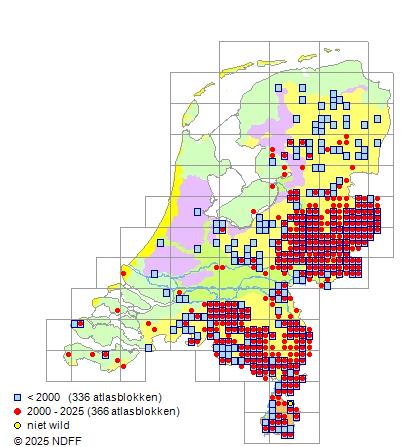 Bron: FLORON - Gemodelleerd op basis van waarnemingen uit de NDFF voor de periode 2000-2021.