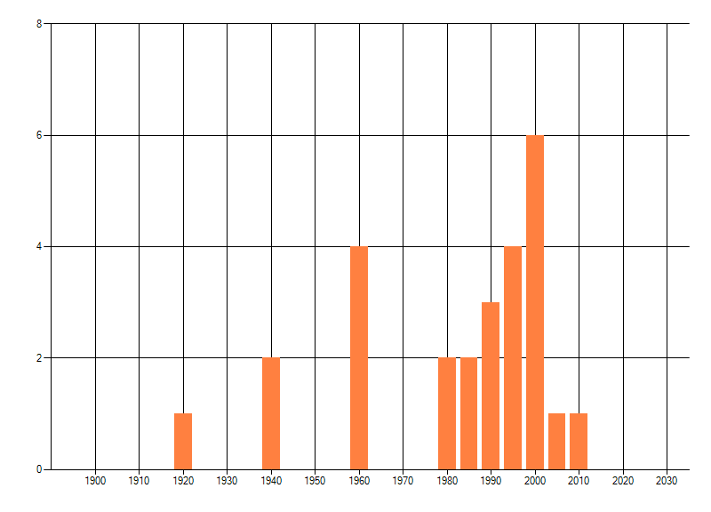Het aantal atlasblokken (5x5 km) waarin de soort is gemeld binnen een periode van vijf jaar (vanaf 1980) of twintig jaar. Niet gecorrigeerd voor waarnemersinspanning en het aantal doorgegeven waarnemingen kan sterk variëren per periode, dus een trend in verspreiding kan hier niet direct uit worden afgelezen. Het opgegeven jaartal is het eerste jaar van de periode. Bron: gevalideerde waarnemingen uit de NDFF.