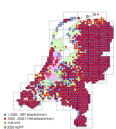 Bron: FLORON - Gemodelleerd op basis van waarnemingen uit de NDFF voor de periode 2000-2021.