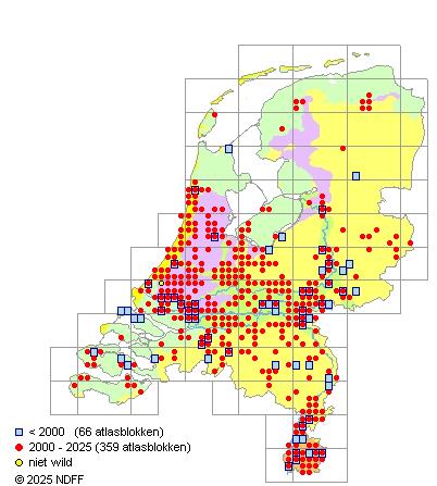 Bron: FLORON - Gemodelleerd op basis van waarnemingen uit de NDFF voor de periode 2000-2021.